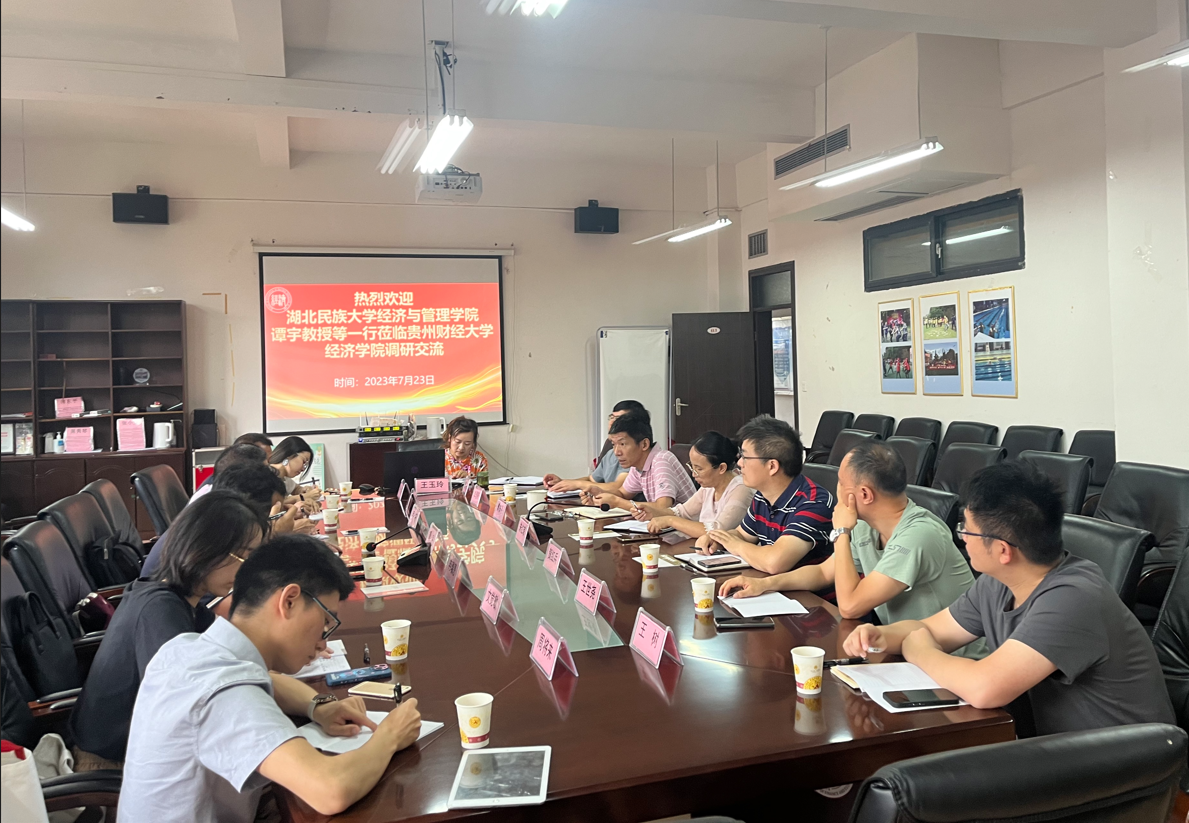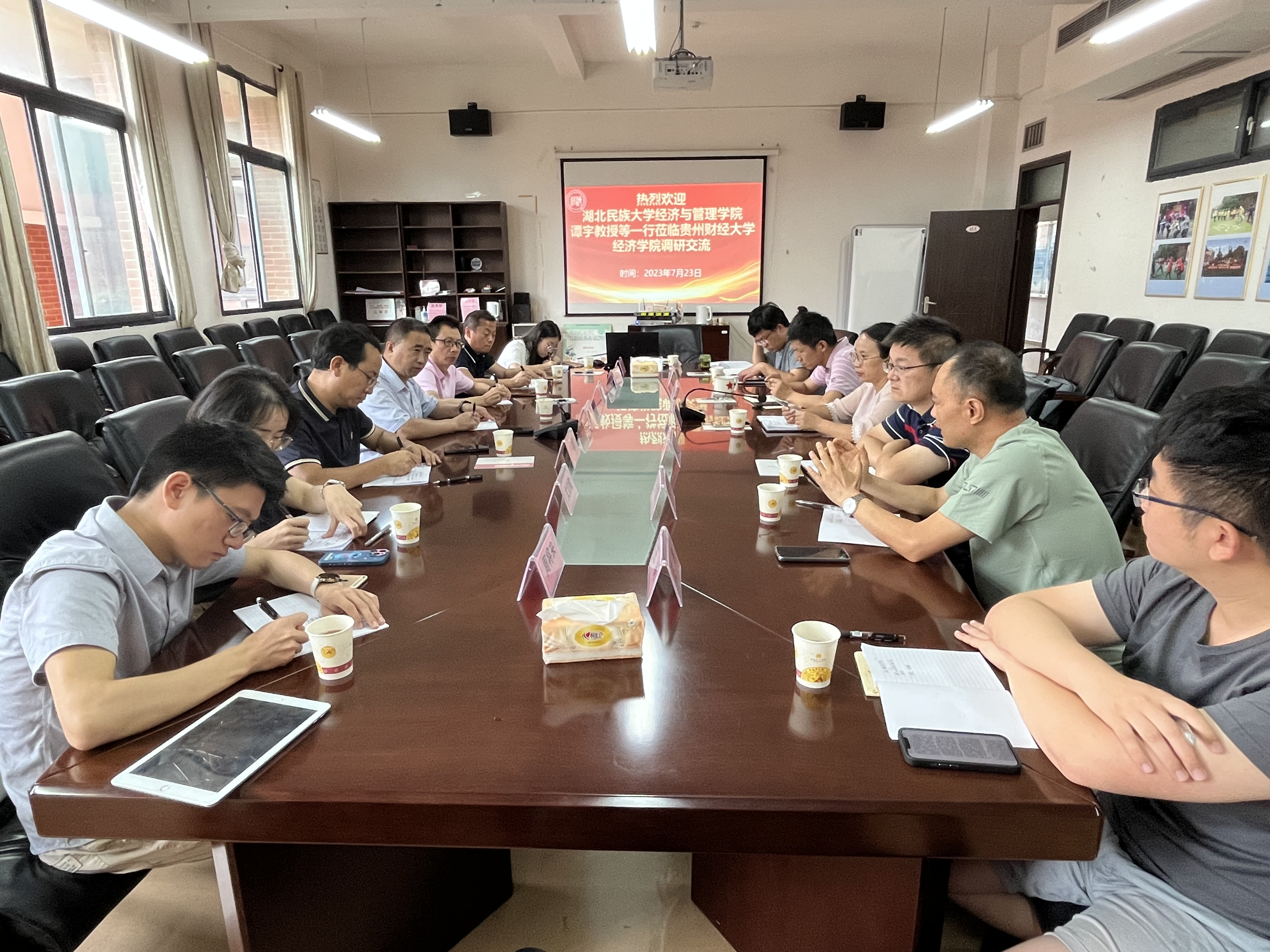 7月23日上午9点半,湖北民族大学经济与管理公司谭宇教授携该院鄂西生态文化旅游研究中心主任、团队建设科科长等一行7人到williamhill官网调研交流。本次调研交流会在明德楼413会议室举行,重点围绕专业建设、团队建设和平台建设展开,williamhill官网朱红琼书记、傅东平副经理、各系主任、硕点负责人代表、办公室、教务办和学科办参加了本次交流会。