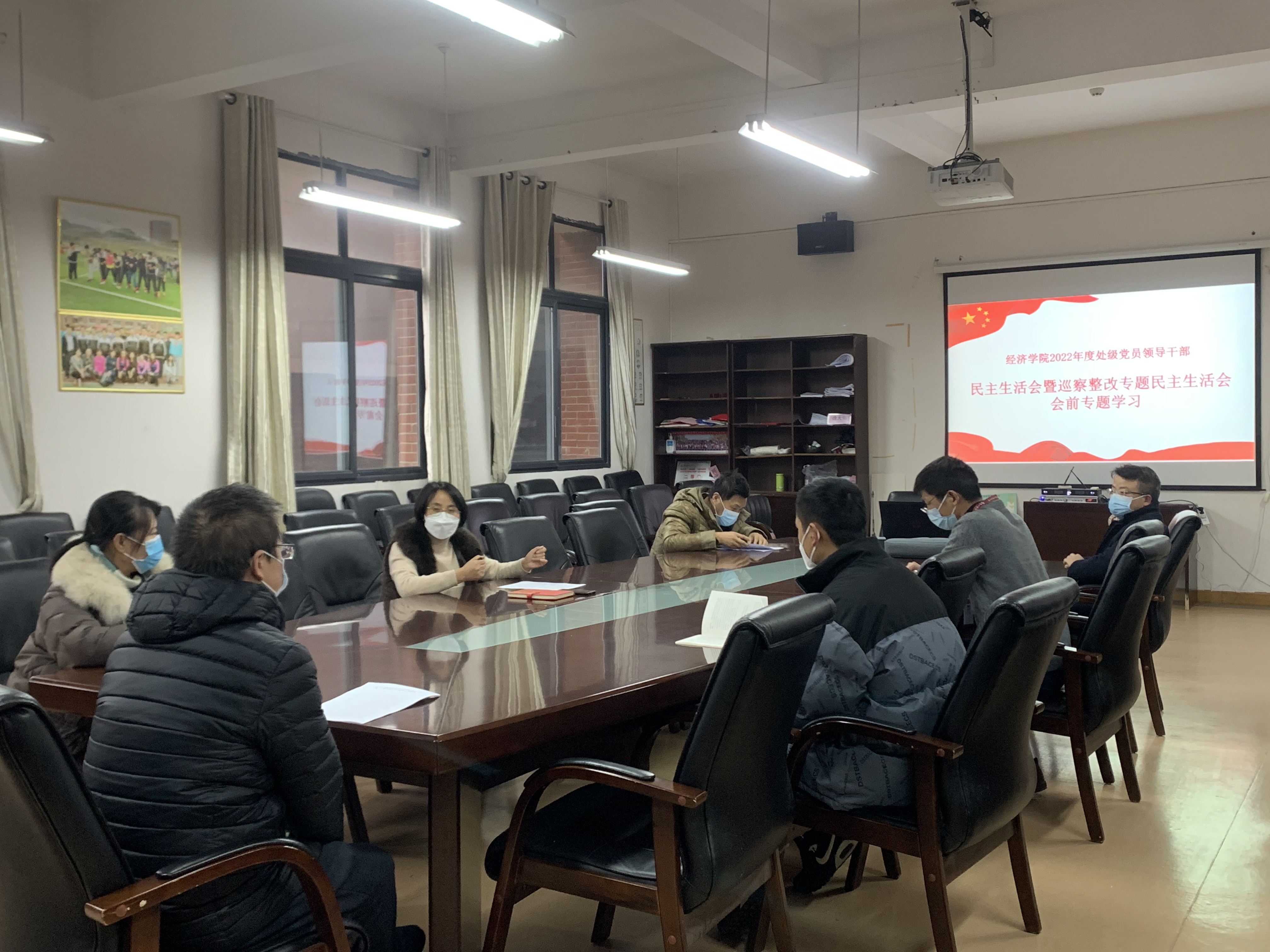 1月9日,经济公司党委理论学习中心组线上线下同步召开了2023年第一次集体学习(扩大)研讨会,进行了2022年度民主生活会暨巡察整改专题民主生活会会前专题学习。williamhill官网全体处级干部、科级干部、支部书记、专职组织员参加学习,会议由党委书记朱红琼主持。