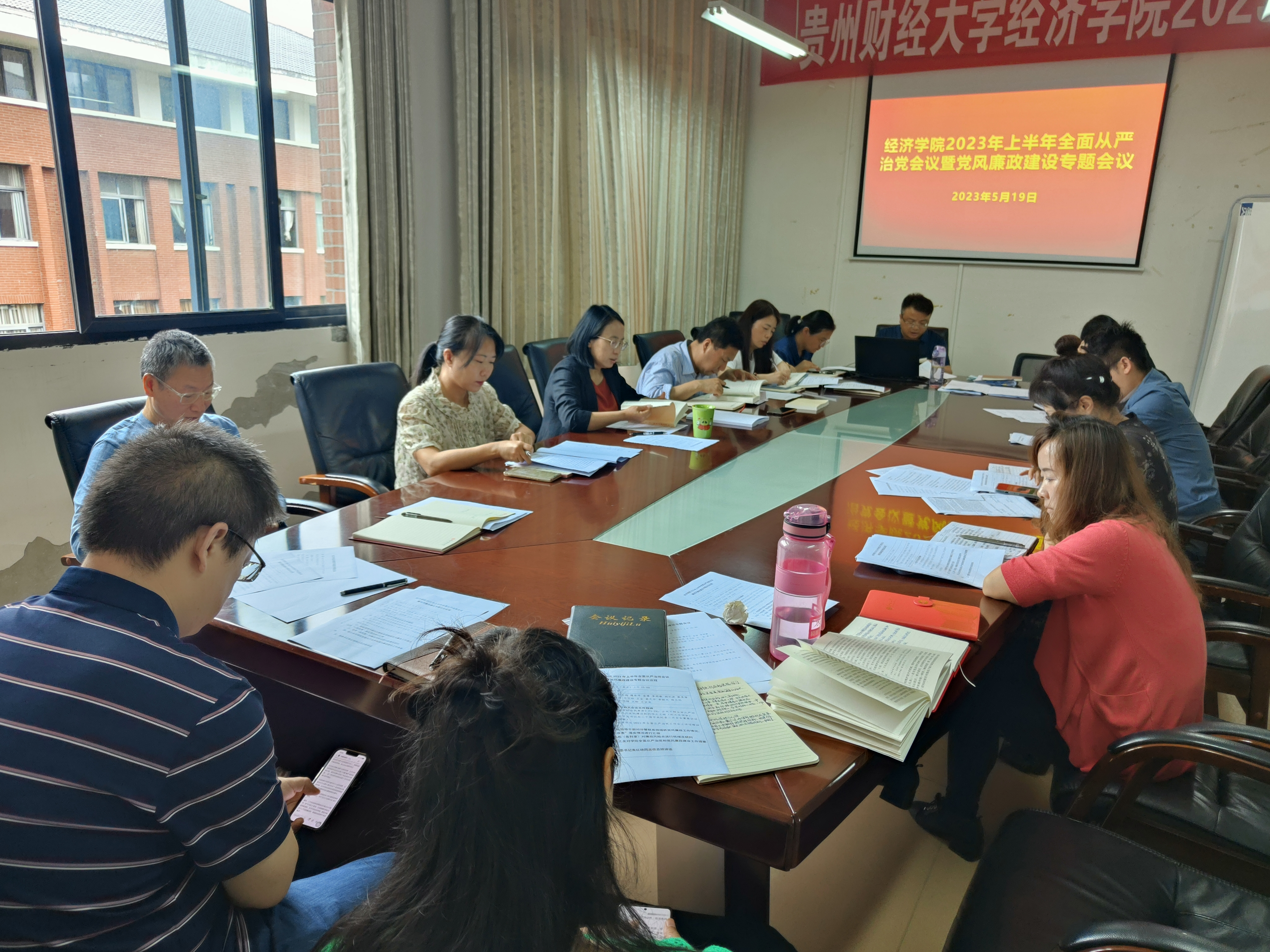 经济公司党委2023年上半年全面从严治党暨党风廉政建设专题会议5月19日在明德楼418会议室召开。williamhill官网全体处级干部、科级干部、支部书记、系副主任和全体辅导员参加会议,会议由党委书记朱红琼主持。