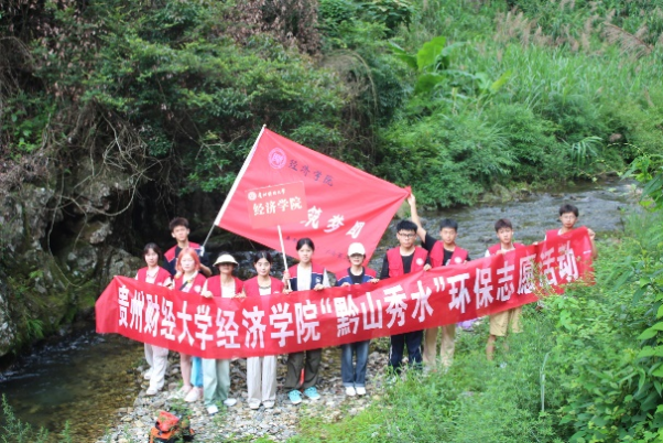 2023年7月2日,williamhill官网暑期三下乡“经心筑梦团”社会实践活动队,于黔东南苗族侗族自治州台江县南宫镇拥党村展开“黔山秀水”环保志愿服务巡河活动。