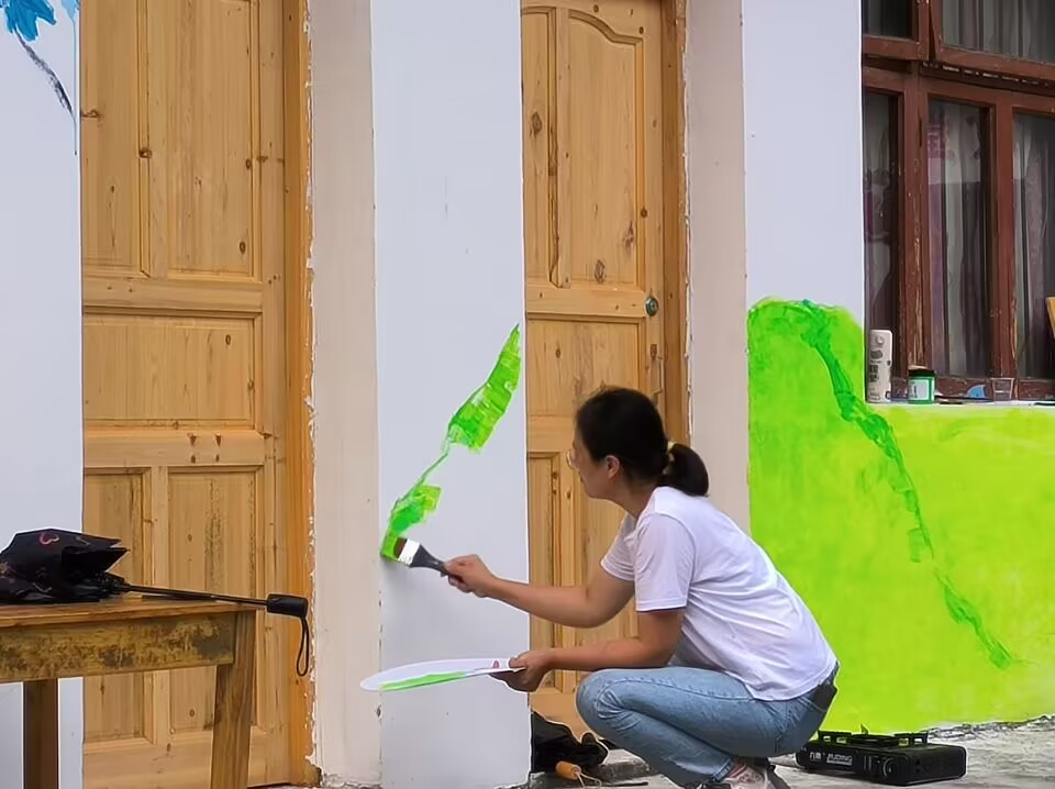 活动第一项为“绘画美丽乡村”,在williamhill官网杨志远老师的带领下,志愿者们对村委新办公楼进行墙绘装饰,绘画围绕环境保护、和美乡村、和谐乡风等主题展开,有效改善了村委会风貌,使老旧的办公楼呈现新貌。