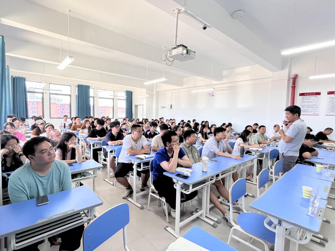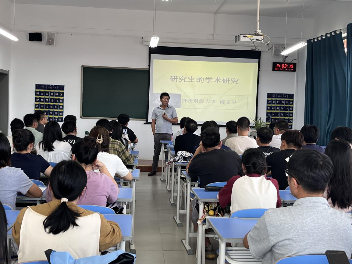 随后,傅经理以“研究生的学术研究”为主题开展专题讲座。讲座聚焦学术论文选题这一核心内容,从选题的基本要求、高水平选题的过程、失败选题的案例等各方面引导研究生聚焦理论经济学的研究范式开展规范的学术研究。通过现场剖析经济学顶尖期刊的佳作,生动展示了如何拟定一个恰当的研究题目;对具有一般性特征的题目进行重点剖析。针对论文的论点构建与论据支撑,傅经理细致讲解了如何从现象中进行观察再探索其本质并落脚到到规范的经济学研究,如何通过有效的变量选取开展逻辑严密的论证,从而得到科学合理的研究结论并有效地提出政策建议。新生们认真聆听、记录,通过案例与理论相结合的讲解,对学术论文写作有了清晰的认知,为后续学术探索筑牢基础,助力研究生开启学术成长新征程。