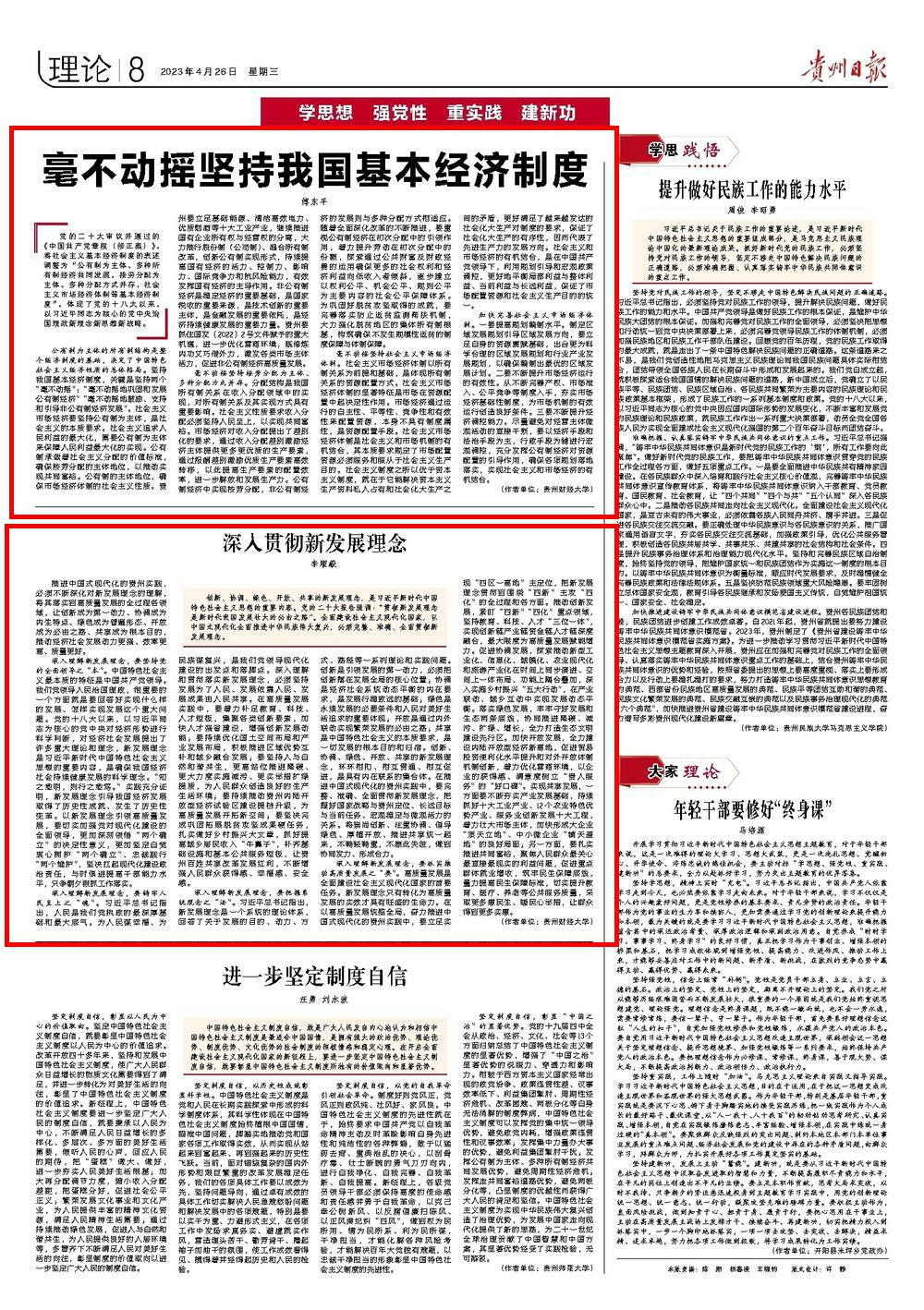 4月26日,《贵州日报》理论版刊发傅东平理论文章《毫不动摇坚持我国基本经济制度》、刊发李顺毅理论文章《深入贯彻新发展理念》。