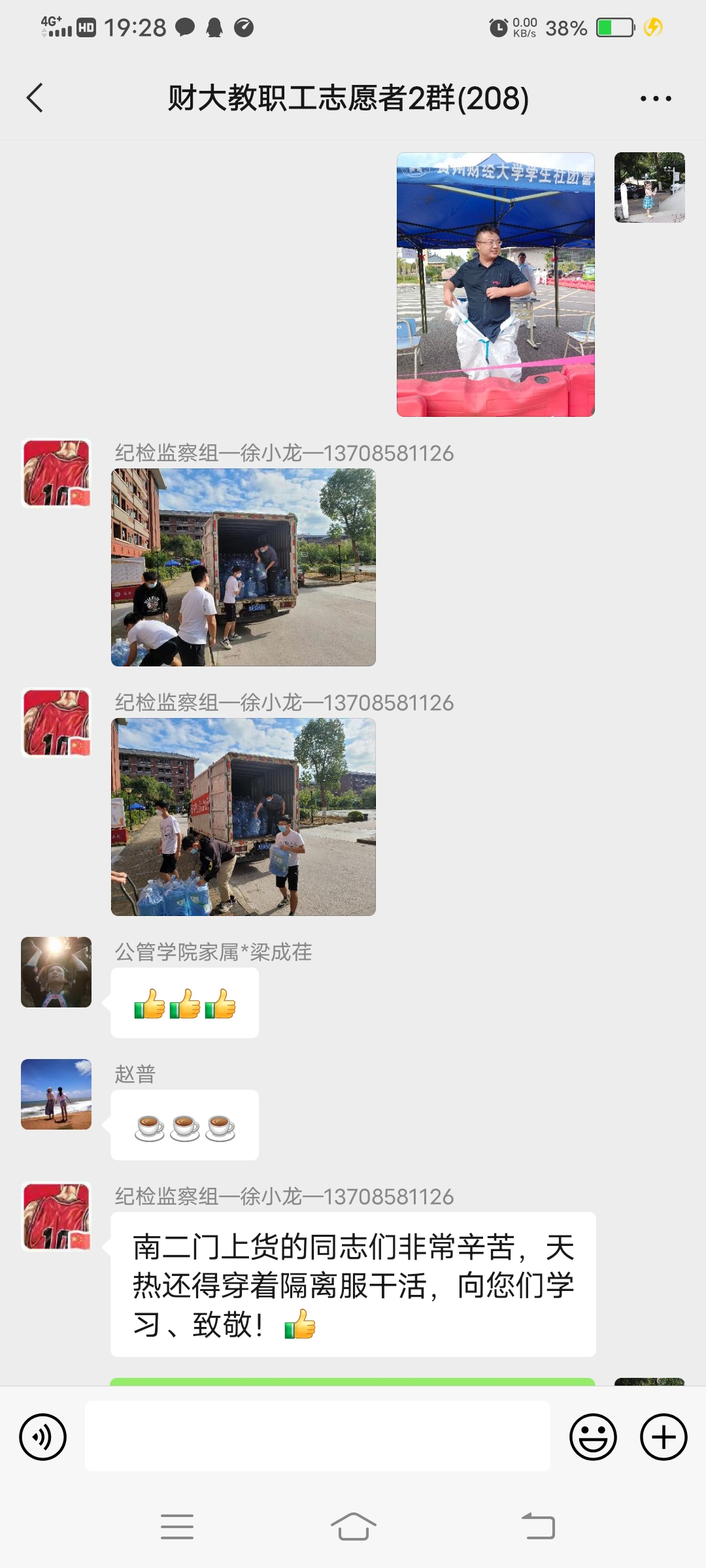 在保证完成好线上教学任务的同时,公司居住在花溪校区的教师纷纷主动报名加入公司的志愿服务,把为公司、为员工贡献一份力量作为自己的应尽之责。物资转运、校门值守、环境消杀、教学楼保洁、食堂秩序维护…他们当中,70%是共产党员,最大年龄57岁。有教授、有博士生导师、有公司领导、还有刚走上工作岗位的科研助理。疫情下,他们成了提笔上讲台,挽袖抬货物的多面手和全能战士!