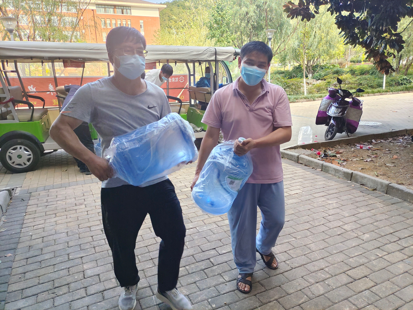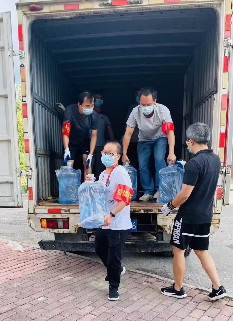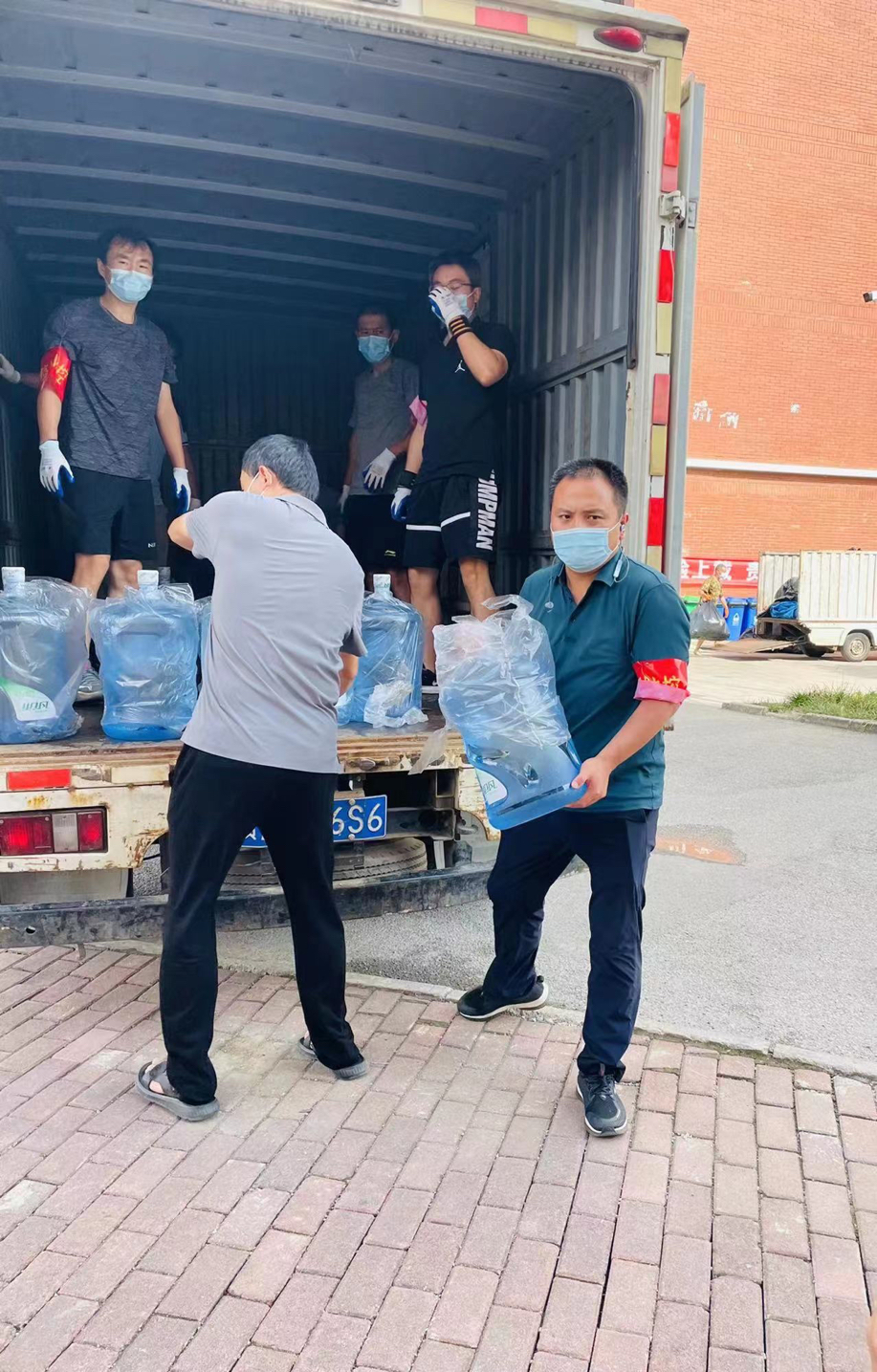 刚从南二门完成卸货任务听到桶装水区也缺人手,立马在群里回应“我可以来!”后赶到现场的党员邓金虎老师缓缓说道:“志愿所为,使命所在,凝聚点滴力量,不惧世间万难”;