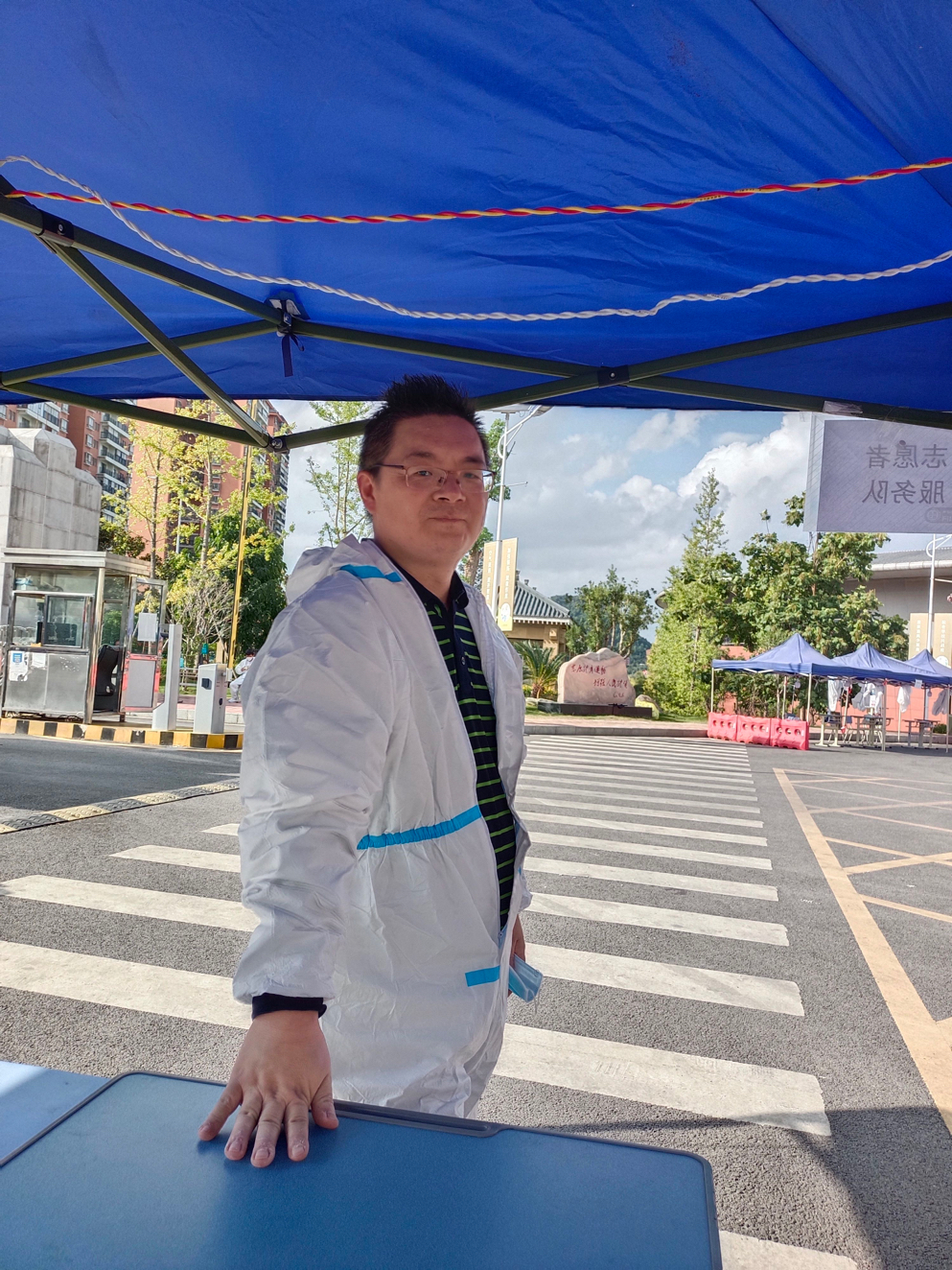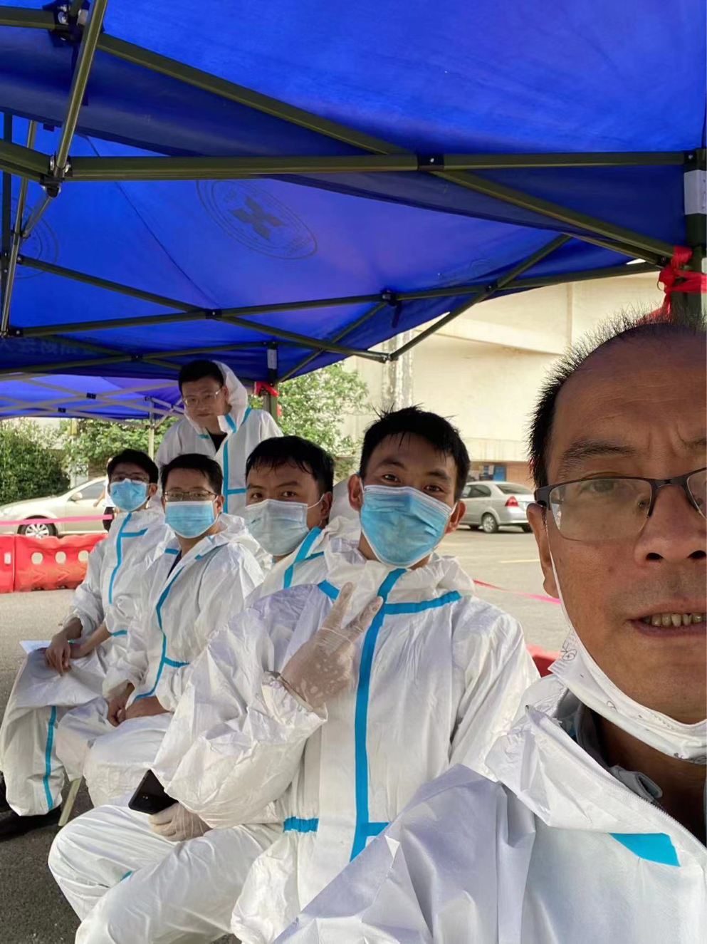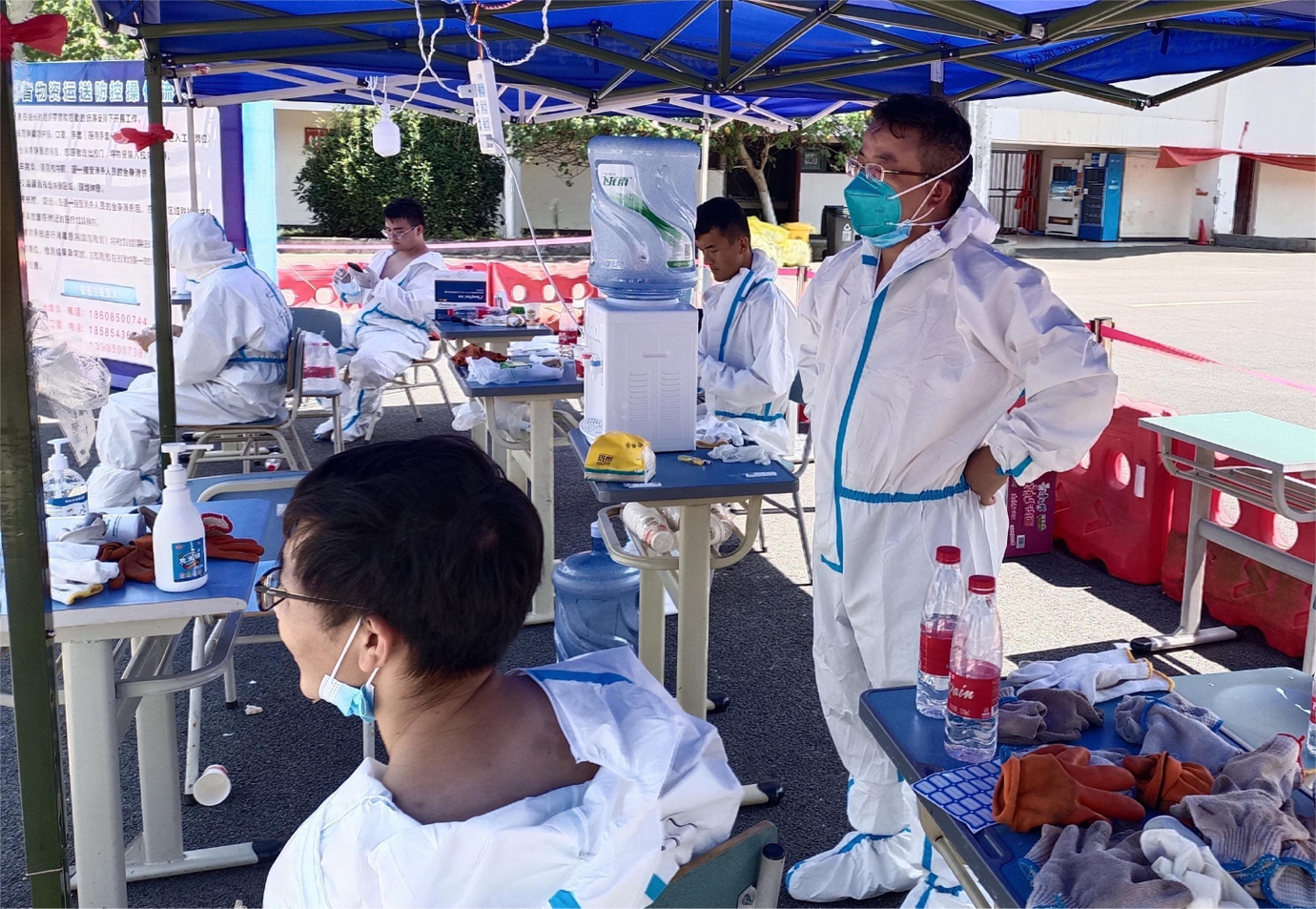 刚从南二门完成卸货任务听到桶装水区也缺人手,立马在群里回应“我可以来!”后赶到现场的党员邓金虎老师缓缓说道:“志愿所为,使命所在,凝聚点滴力量,不惧世间万难”;