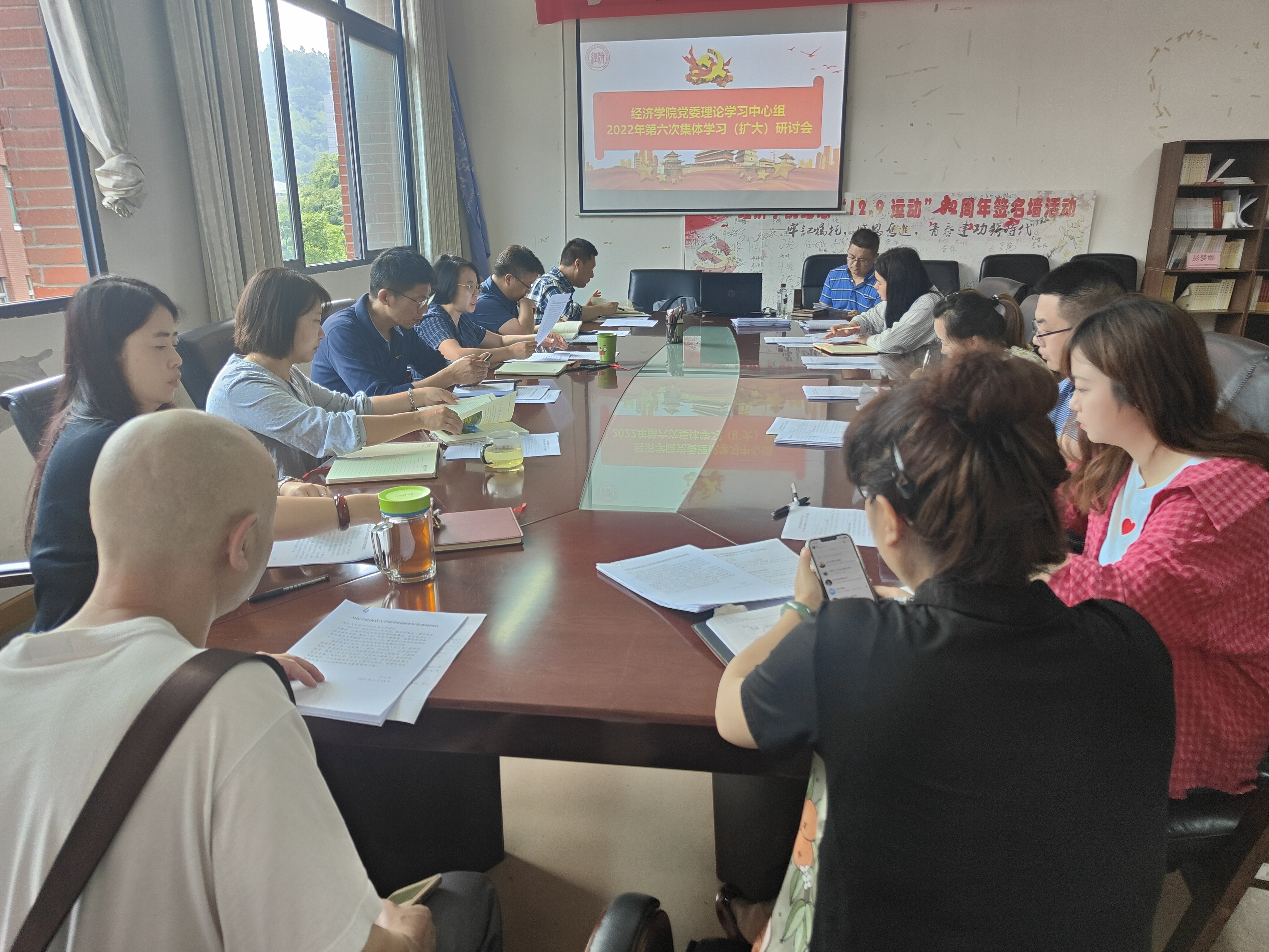 6月21日,经济公司党委理论学习中心组召开2022年第六次集体学习(扩大)研讨会,专题学习中国共产党贵州省第十三次代表大会精神。williamhill官网全体处级干部、科级干部、支部书记参加学习,会议由党委书记朱红琼主持。