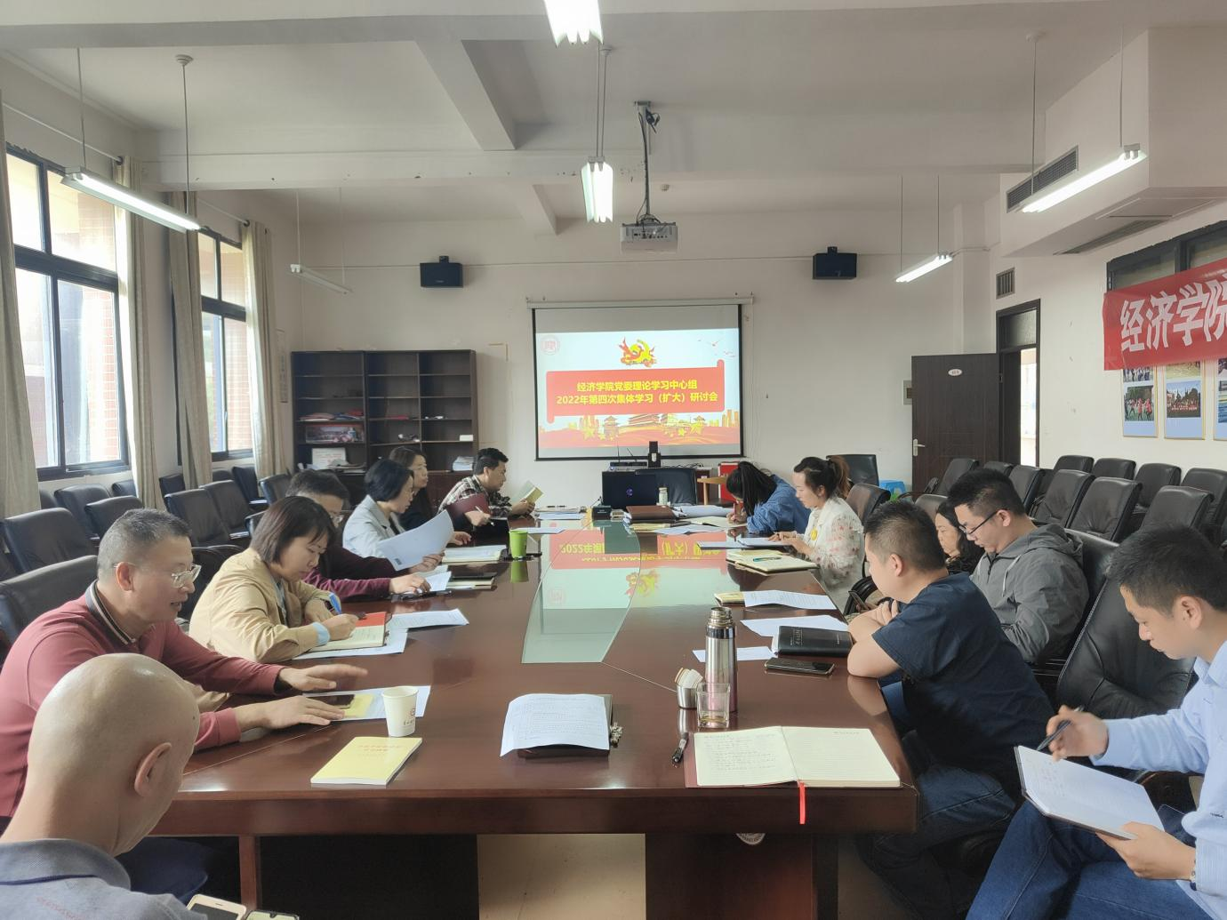 4月24日,经济公司党委理论学习中心组2022年第四次集体学习(扩大)研讨会在明德楼413会议室召开。williamhill官网全体处级干部、科级干部、支部书记参加学习,会议由党委书记朱红琼主持。