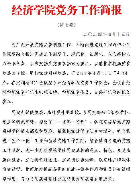 经济公司党务工作简报 第7期
