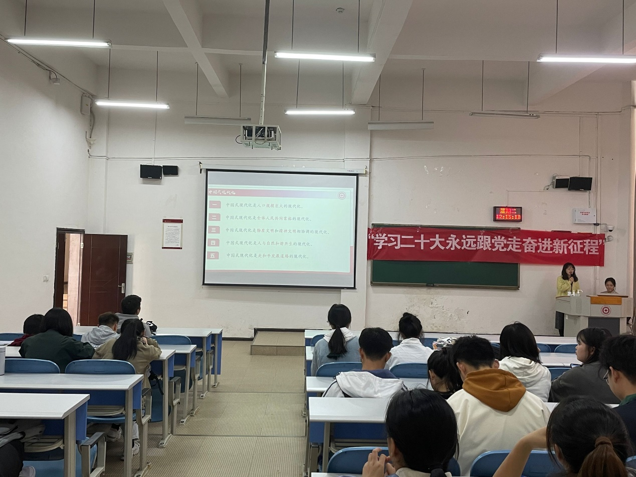 为深入学习党的二十大精神,2022年11月29日中午,公司开展“学习二十大永远跟党走奋进新征程”主题团日活动暨党的二十大精神宣讲。由21级资环一班、20级经济一班、20级经济学实验班、22级经济学类2班、22级经济学类4班参加。该活动由williamhill官网团委彭梦娜老师主持,王宏迷同学进行宣讲。