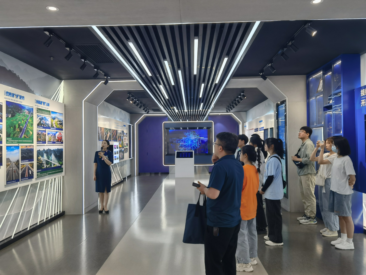 首先,集团工作人员的带领同学们到贵州高速集团的路网应急调度指挥中心,为同学们就贵州高速公路的规划发展历程、高速公路在贵州经济发展中的重要作用以及贵州省高速公路的路网图等进行讲解。