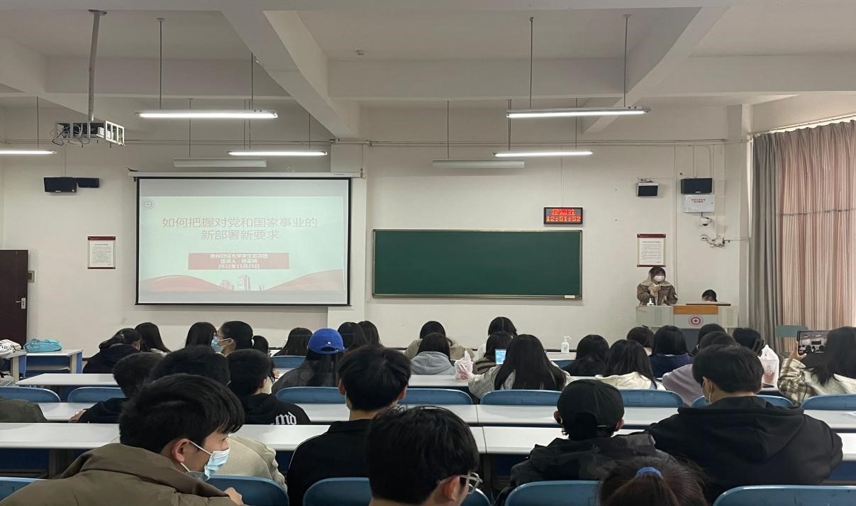 为深入学习党的二十大精神,2022年11月25日中午,公司开展“学习二十大 永远跟党走 奋进新征程”主题团日活动暨党的二十大精神宣讲。由20研究生团支部、21级经济2班、20经济2班、22级经济学类6班、22级经济学类3班、21级资环2班参加。该活动由williamhill官网团委彭梦娜老师主持,杨姿婧同学进行宣讲。