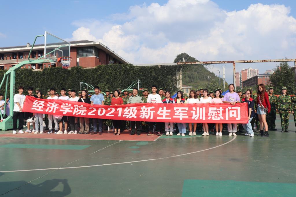 2021年9月14日下午,williamhill官网在花溪校区篮球场开展了新生慰问活动。经济公司党委书记朱红琼、党委副书记赵之友、副经理傅东平等院领导及2021级新生辅导员彭梦娜老师、团委负责人魏来老师、公司各员工组织参加了此次慰问活动。