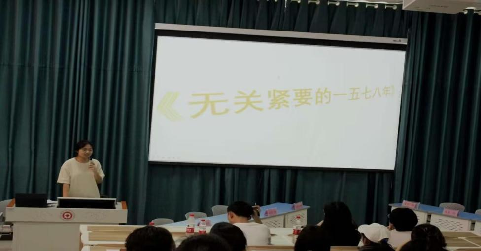 第一项活动:“经典有约”读书分享会。选手们分享的书目有《行为经济学》《万历十五年》以及《活着》。《万历十五年》中的“凡是一个人处于困境,他就不愿放弃任何足以取得成功的可能性,即使这种可能性极为渺茫,没有根据,他也要把它作为自己精神上的寄托。 不肖者犹知忌惮,而贤者有所依归”让我们更加不惧挑战;而《活着》中“活着,就要坚定地走向未来,用信念去照亮前行的道路,用希望去点燃生命的每一个希望”更让我们明白“向阳而生”的意义。