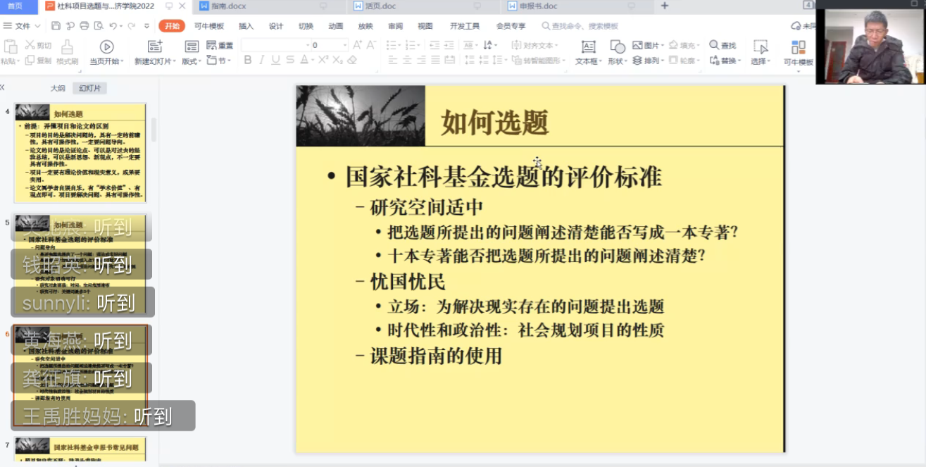 2022年1月17日上午,williamhill官网傅东平副经理在线开展“国家社科基金申报书写作”辅导讲座,williamhill官网教职工、博士研究生共40人在线参加讲座。
