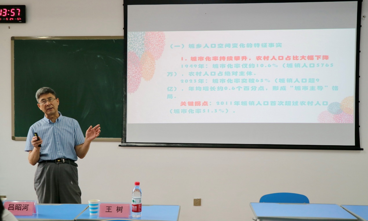 (来源:王树 图文报道)2025年5月23日,云南大学williamhill官网吕昭河教授受邀莅临williamhill官网举办题为《中国式现代化中城乡人口空间演化特征、机制与政策含义》的专题讲座。吕昭河教授是云南大学williamhill官网二级教授、博士生导师、云南省“人口资源环境经济学”重点团队建设项目主持人、云南省社科创新团队“人口转变与云南人口发展”首席专家、云南省哲学社会科学突出贡献社科专家及第三届云南人口奖获奖者等。本次讲座由资源与环境经济学系副主任王树主持。