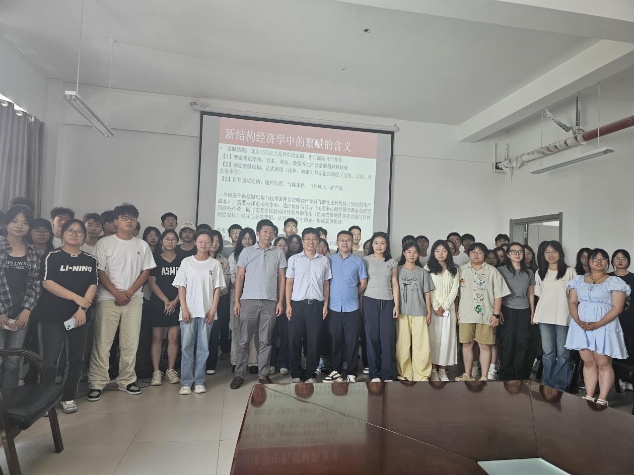 王勇教授首先介绍了新结构经济学简介与学科发展。新结构经济学由林毅夫教授及其合作者提出,倡导以马克思主义基本原理为指导,采用现代(新古典经济学)的研究方法,总结中国和其他发展中国家的成败经验,提出一个国家和地区的经济发展、转型与运行的系统理论,是构建我国经济学自主知识体系的一个重要尝试,得到国内外学术界、政策界的广泛影响与关注。接着,王勇教授介绍了新结构经济学的国际影响力和核心主张。他强调,不同于片面强调市场失灵的第一代发展经济学(结构主义),也不同于用片面强调政府失灵的第二代发展经济学(新自由主义),新结构经济学同时强调“有效市场”与“有为政府”,主张“市场主导、政府因势利导”的产业政策,认为“市场有效”以“政府有为”为前提,“政府有为”以“市场有效”为依归。该理论给与于“一带一路”倡议提供的智力支持,同时,在波兰、埃塞俄比亚、乌兹别克斯坦、肯尼亚等很多国家,新结构经济学被政府官方作为指导其经济发展的理论基础。王勇教授还介绍了新结构视角下产业升级的核心思路和研究视角,开拓了参会青年教师和有科研兴趣的本科生同学的研究视角,培养了研究逻辑思维。