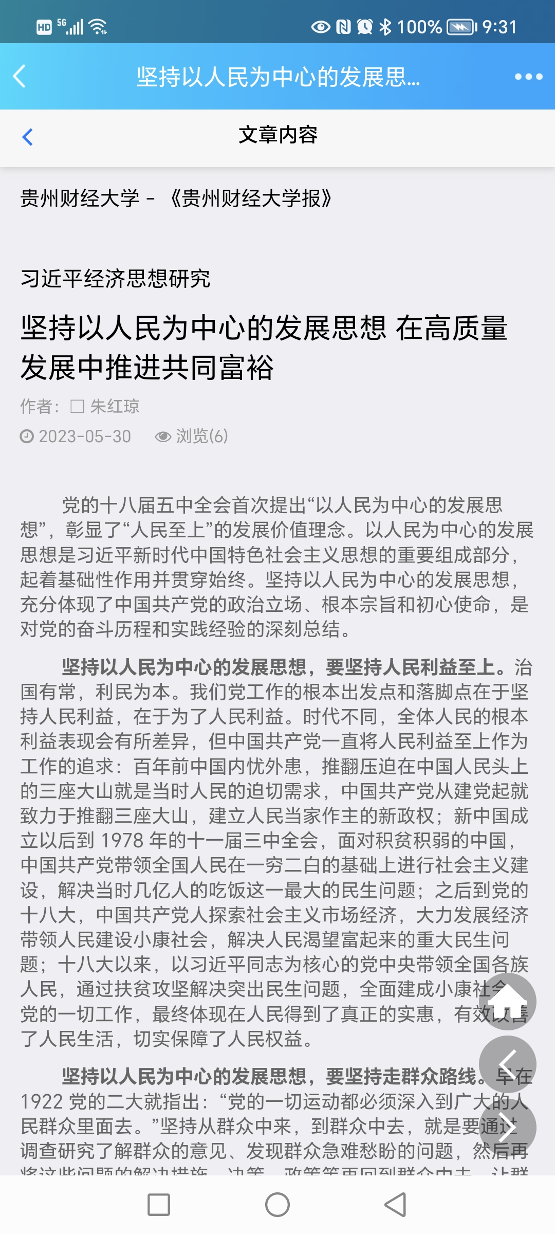 坚持以人民为中心的发展思想,要使改革发展成果更多更公平惠及全体人民,实现共同富裕。习近平总书记在党的二十大报告中提出:“增进民生福祉,提高人民生活品质。“带领人民创造美好生活,是我们党始终不渝的奋斗目标。必须始终把人民利益摆在至高无上的地位,让改革成果更多更公平惠及全体人民,朝着实现全体人民共同富裕不断迈进。”党的十八大以来,党中央坚持把改善人 民生活、增进民生福祉作为一切工作的出发点和落脚点,让改革成果更多更公平地惠及全体人民,使人民获得感幸福感安全感更加充实。共同富裕是全体人民的富裕,贵州省从人民群众最关心最直接最现实的利益问题入手,在省十三次党代会中对加快推动共同富裕进展进行了部署:巩固拓展脱贫攻坚成果,增加脱贫群众收入;扎实做好乡村振兴大文章,发展乡村产业带动农民增收;大力实施城乡居民增收行动,以增加收入为引领,带动提高保障和改善民生水平;加快补齐基本公共服务短板,实施好基本公共服务标准,确保基本公共服务覆盖全民、兜住底线、均等享有;夯实城乡基础设施支撑,构建现代化基础设施体系,从根本上解决制约发展的基础性问题。