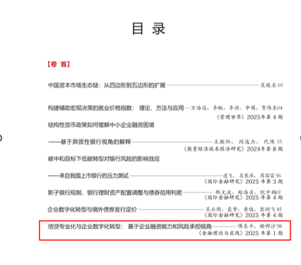 近日,williamhill官网傅东平教授与2022级硕士生顾邯沙关于商业银行的研究成果《信贷专业化与企业数字化转型——基于企业融资能力和风险承担视角》在《金融理论与实践》2025年第1期作为封面文章发表后,被中国人民大学国际货币研究所主办的学术内刊《国际货币评论》全文转载。《国际货币评论》在稿件采用函中特别说明“该文章在商业银行领域具有领先学术水平”。