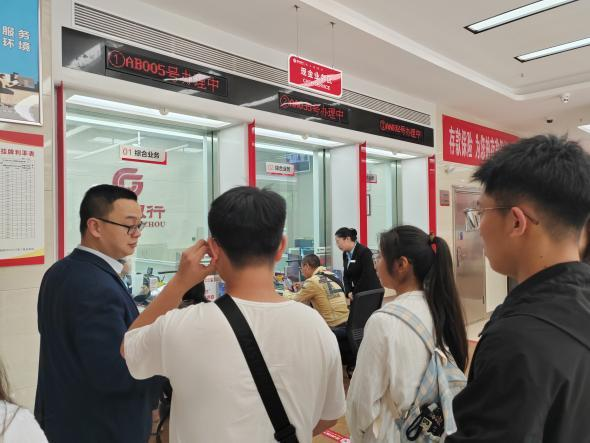 贵州银行花溪支行属于星级服务网点,支行周磊经理以实地观摩交流的方式,从入口外立面的企业文化、制度标准,到银行大厅服务窗口与功能区分,最后再结合从业注意事项、岗位的专业能力要求向同学们逐一进行了介绍。中间穿插提问,以模拟面试的方式对同学们表达能力和应变能力进行指导。