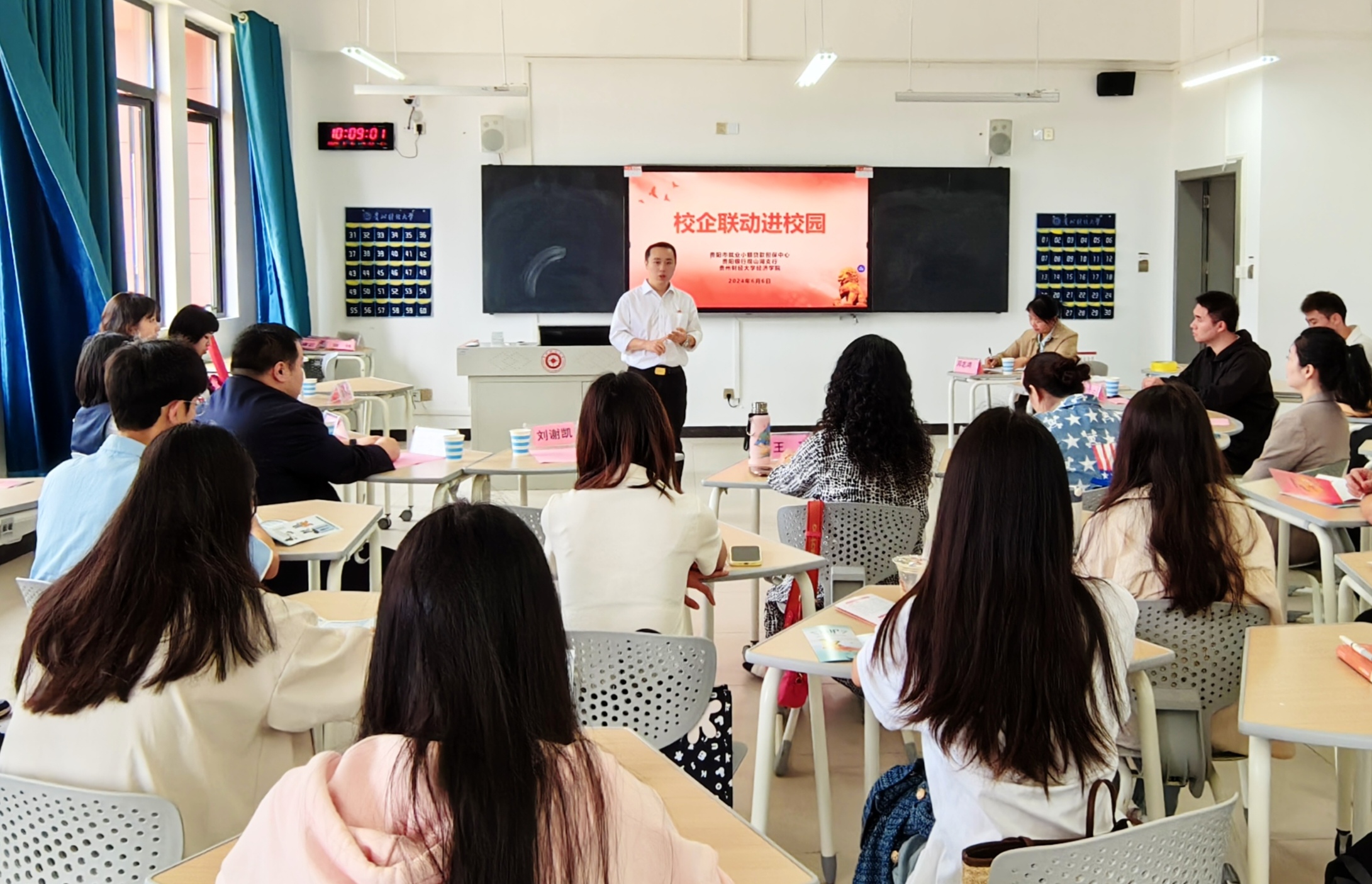 贵阳银行观山湖支行王小玲围绕征信知识、防范电信诈骗、反假币宣传等金融知识进行宣讲,举例提醒同学们及时还贷的重要性以及不良影响。