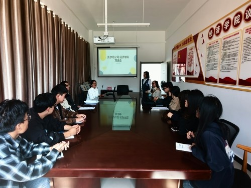 本次宣讲会邀请到沃尔玛人民广场总店HR、公司2018届国际经济与贸易团干员工向蓉蓉,沃尔玛小河片区运营主管、2024届资源与环境经济学团干员工冯梅,共同向2025届毕业生们分享初入职场应遵循的规则与技巧、行业动态与发展趋势等宝贵信息,为员工和企业搭建了高效的沟通桥梁,同学们积极参与互动提问,现场气氛热烈。交流座谈的形式不仅帮助员工更好地了解就业市场和企业需求,也为企业选拔优秀人才提供了便捷的渠道。