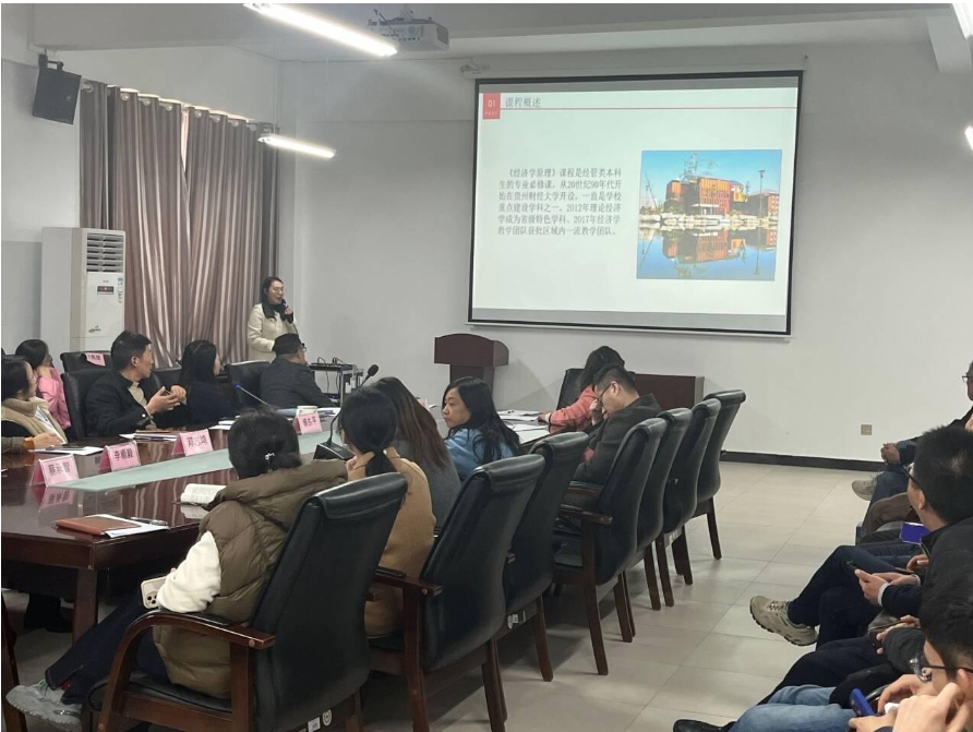 在说课过程中,徐灿琳老师以获得贵州省普通本科高校省级“金课”的课程内容为主题,做了《经济学原理》课程的说课,从课程概述,教学设计,教学方法,教学环境,特色创新,教学效果评价等方面做了具体讲述。胡剑波副经理从专业角度做了点评,督导老师们也都从不同方面做了点评。此次说课活动受到大家一致好评。